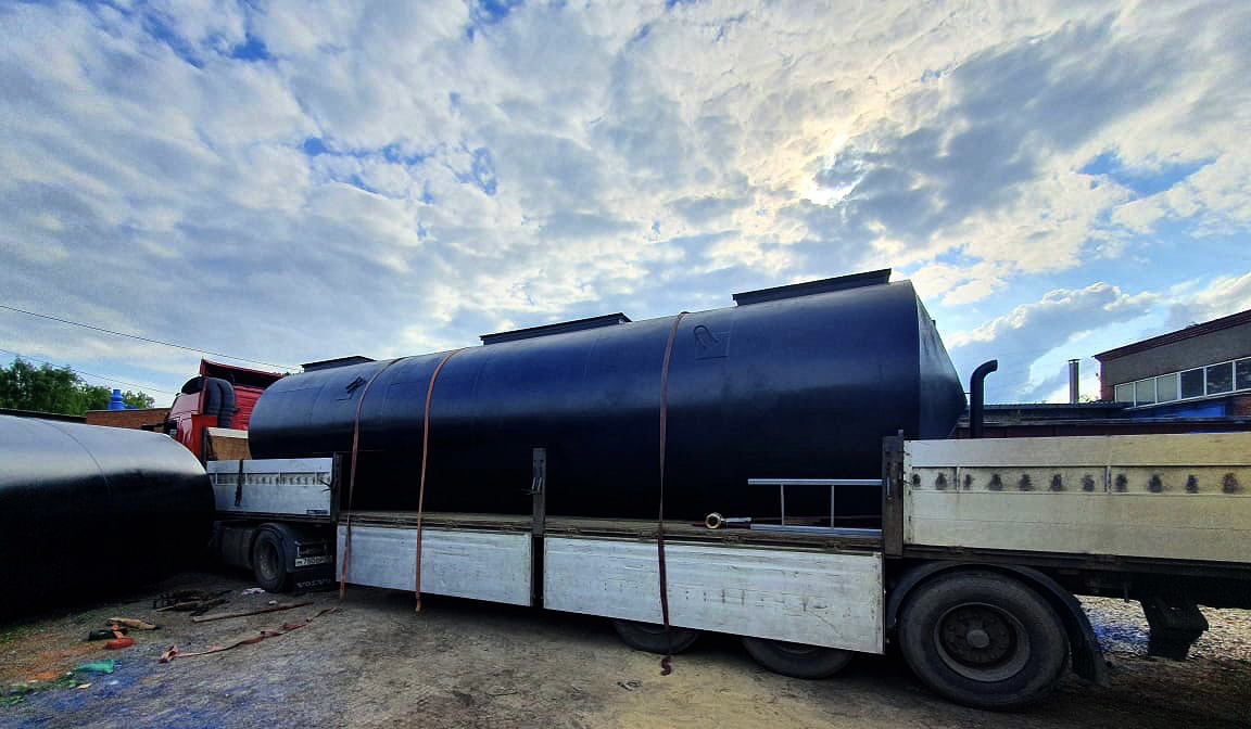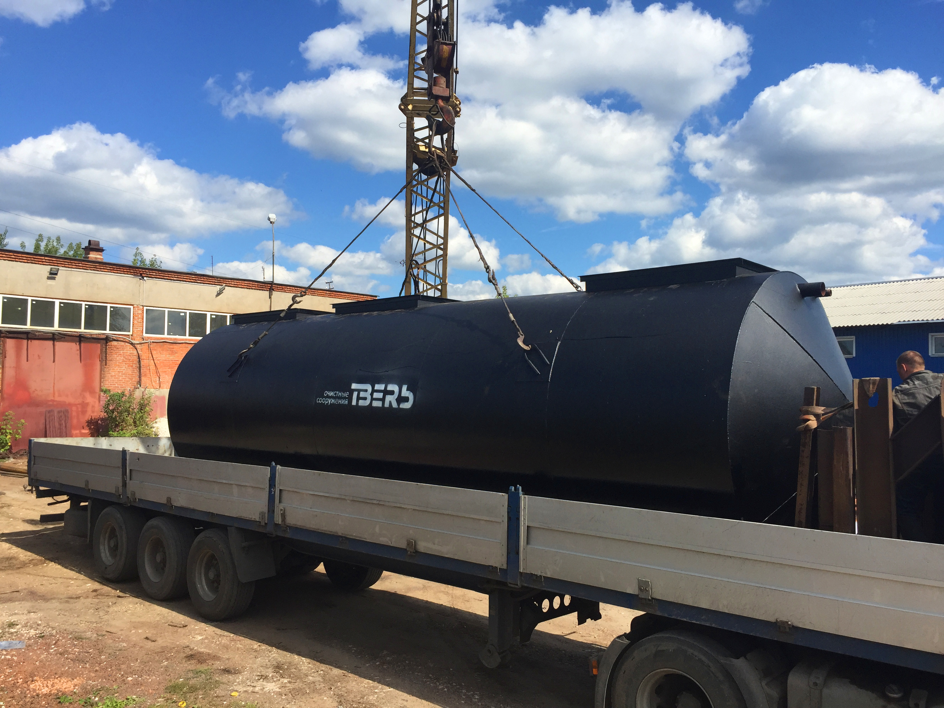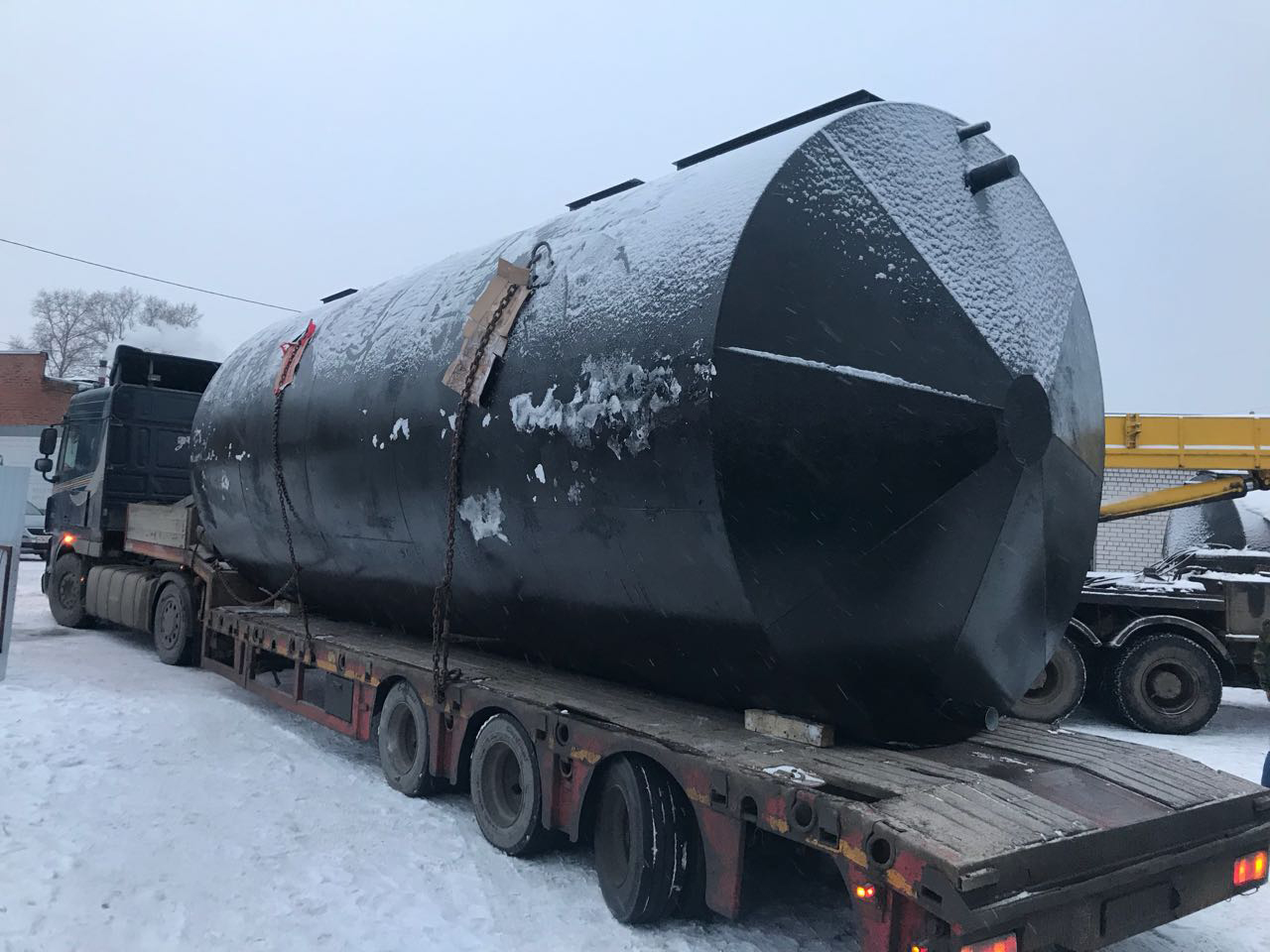 Габариты очистного сооружения: 2 емкости длиной 9800 / диаметром 2400 / весом 11800 кг.